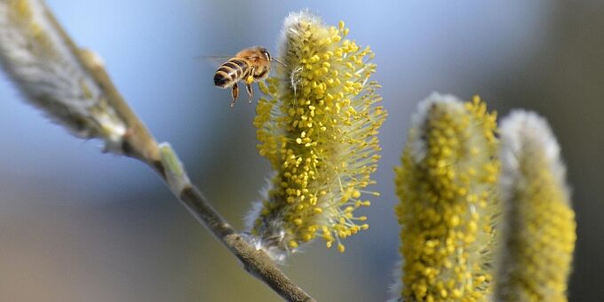 Erlen- und Haselnussblüten lassen die ersten Nasen kitzeln. Früh fliegende Bienen und Hummeln schweben über den ersten sprießenden Blüten.